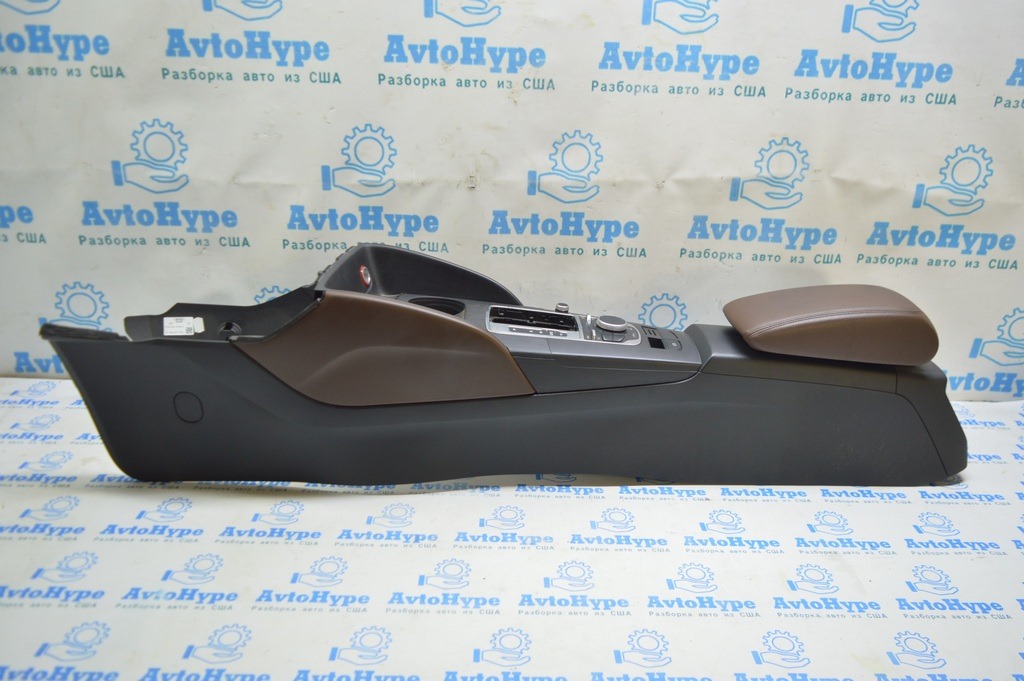 Консоль центральная подлокотник Audi A3 8V 15-20 черная, подлокотник кожа коричневая (01)