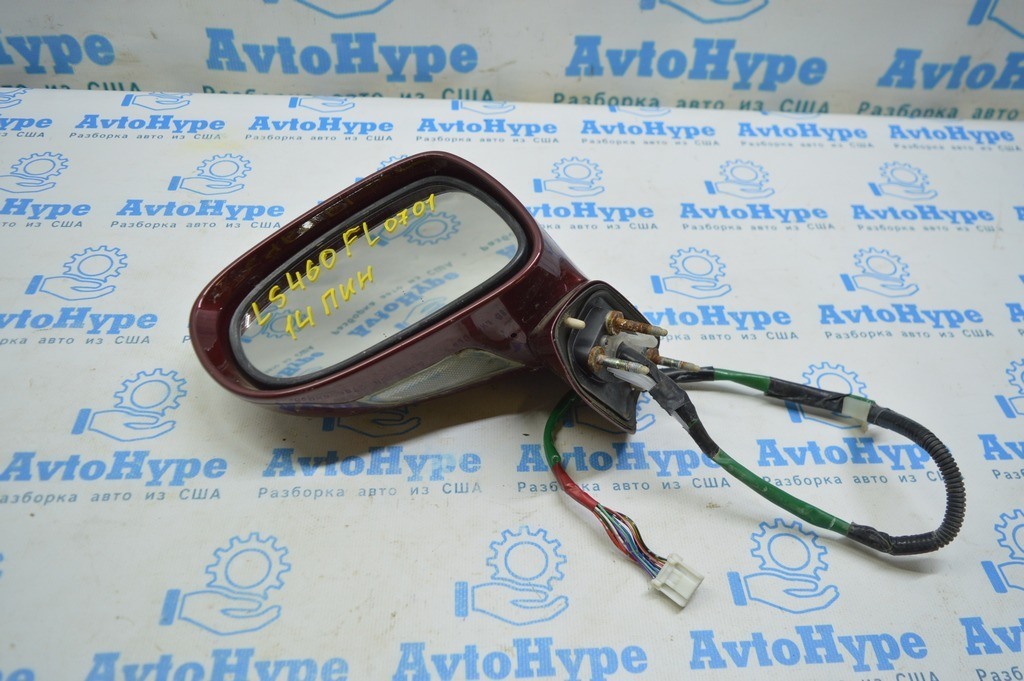 Зеркало боковое левое Lexus LS460 LS600h 07-12 14 пин (01) бордовый цвет скол на подсветке 87940-50511-C0