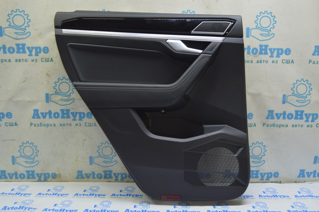 Обшивка двери (карточка) зад лев VW Touareg 18- черн, кожа без вставки