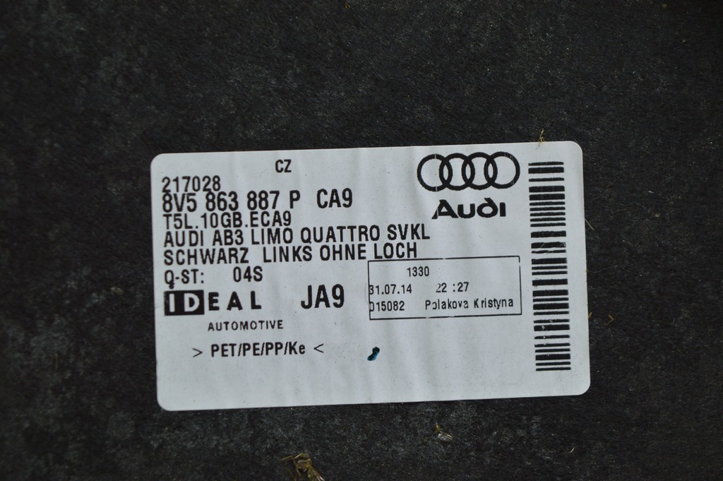 Обшивка арки левая Audi A3 8V 15-20 4d, 5d, без заднего airbag, AWD (8V5-863-887-BD-CA9)