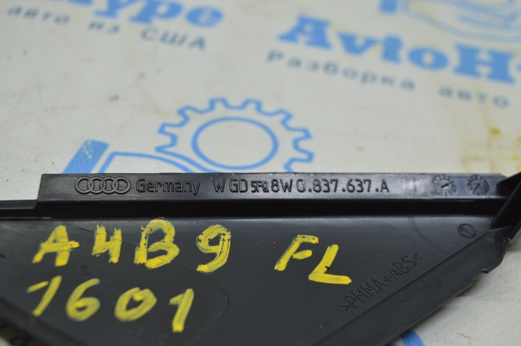 Треугольник заглушка двери передней левой Audi A4 B9 17- черн глянец