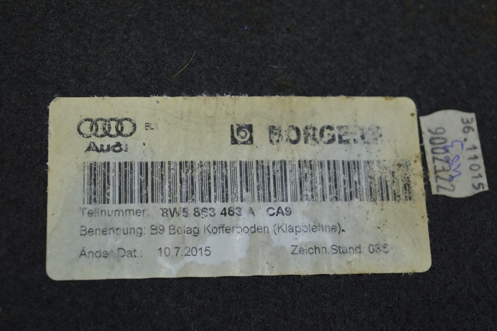 Пол багажника Audi A4 B9 17- черный