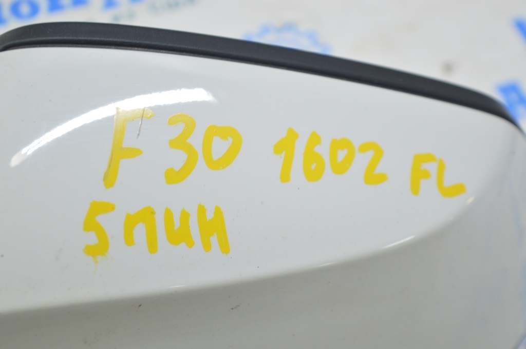 Зеркало боковое левое BMW 3 F30 4d 13-18 usa 5 пинов, крепление мат, поворотник, белое (02)