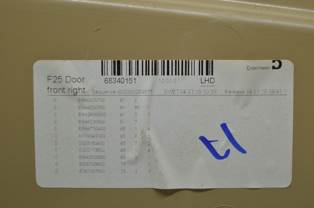 Обшивка двери карточка передняя правая BMW X3 F25 11-17 кожа бежевая (02)