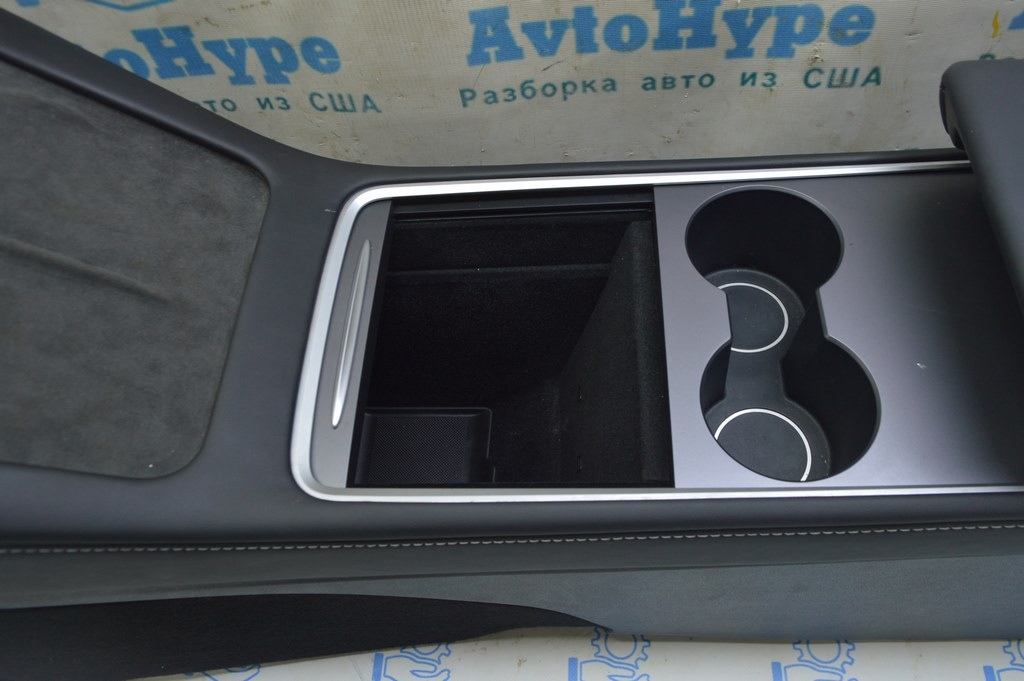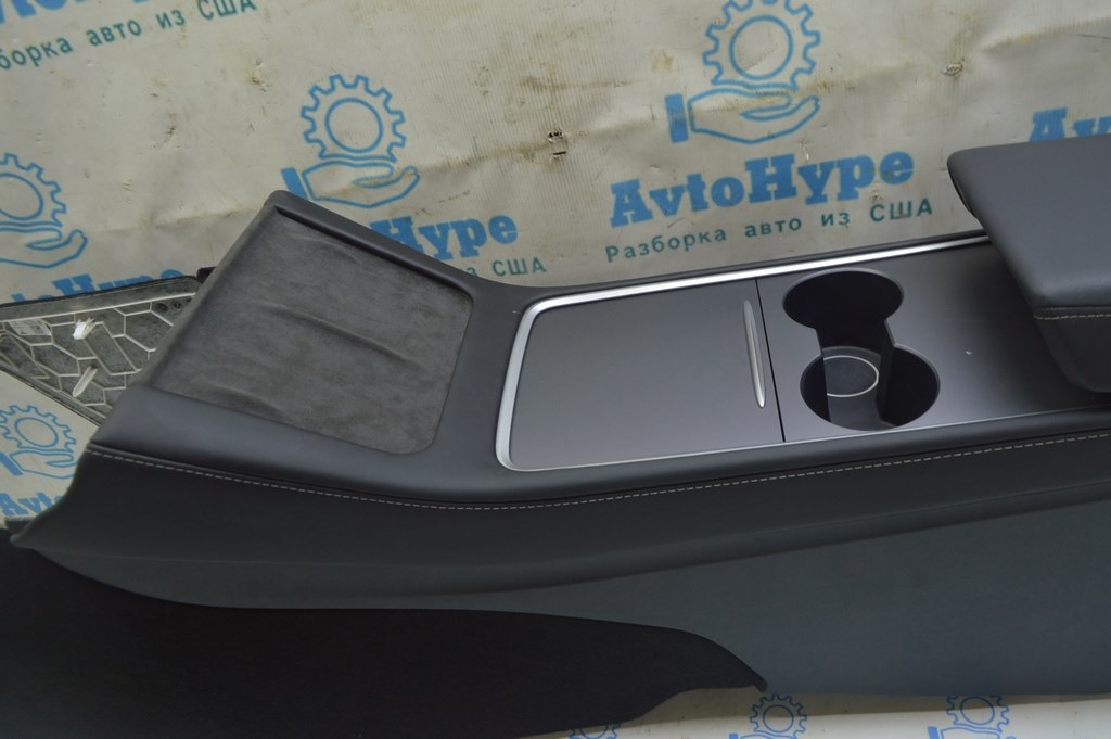 Консоль центральная подлокотник и подстаканники Tesla Model 3 21- кожа черн, c зарядкой (02)